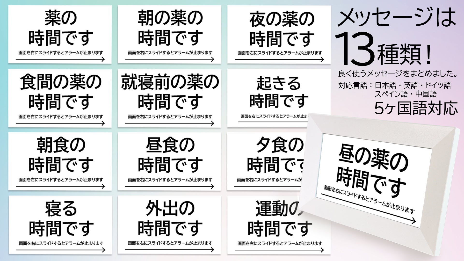 お薬アラームやフォトフレーム以外にもマルチ機能搭載!