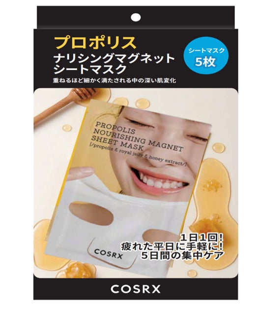 「フルフィット プロポリス ナリシング マグネットシートマスク」は、ツヤ・保湿・ハリ対策に、3つのハチミツ由来成分*10が配合されており、乾燥からお肌を守り、モイスチャーバランスを整え、ハリのあるツヤ肌へと導きます。