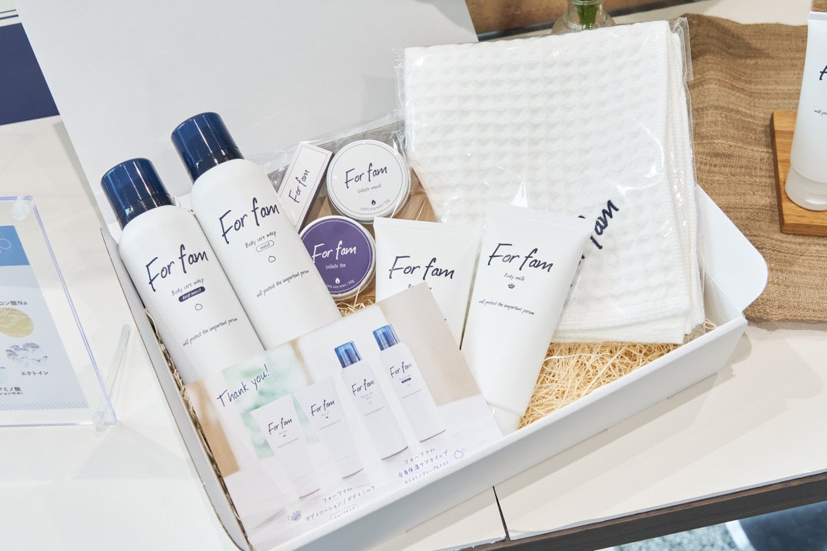 会場内には、For famの世界観に包まれて写真撮影ができるオリジナルフォトスペースや、コンセプトを表現したフォトギャラリーをご用意。さらに、お肌へのやさしさを追求したFor famならではの配合成分にまつわる展示を行いました。