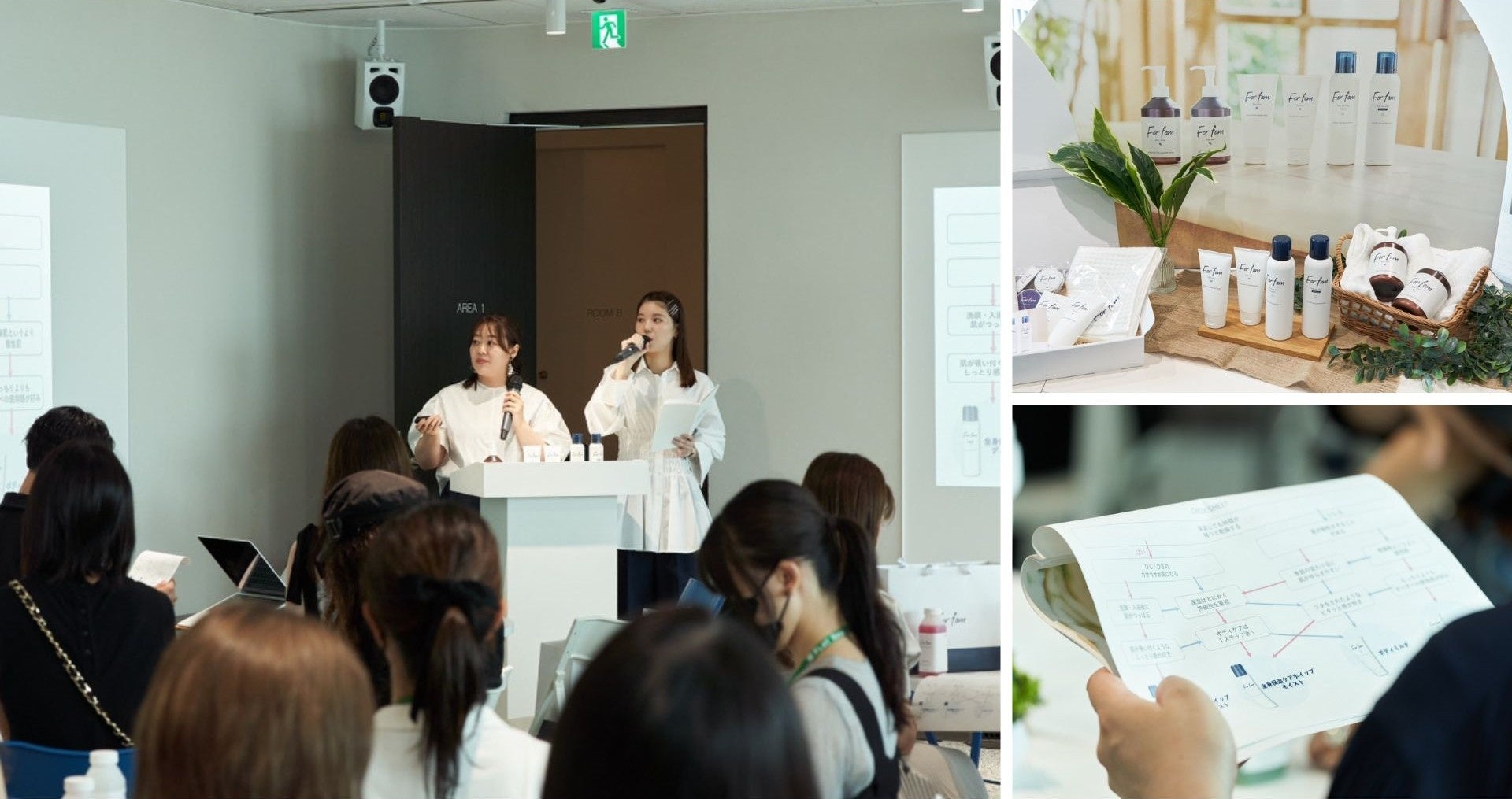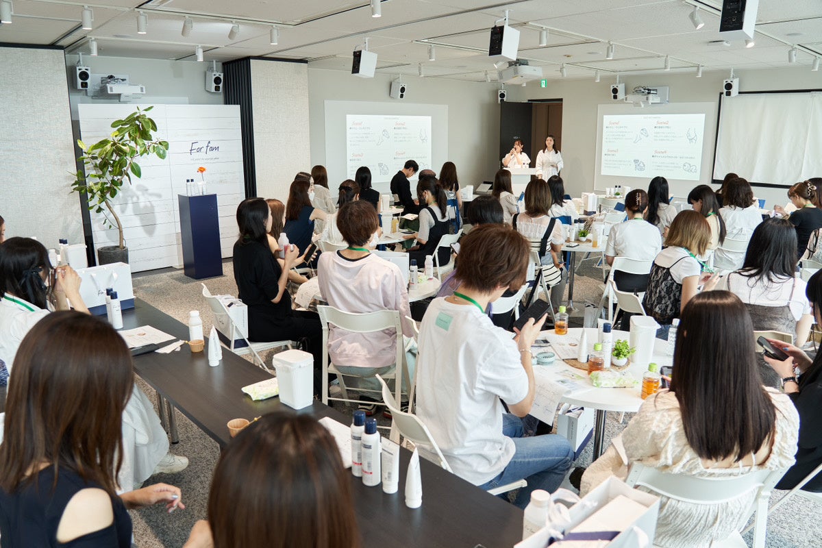 イベントでは、開発担当者より2024年8月30日(金)発売の新商品『フォーファム 全身保湿ケアホイップ モイスト/ディープモイスト』『フォーファム ボディ ローション/ミルク(チューブタイプ)』のお披露目を行いました。商品へのこだわりをお伝えするとともに、肌診断チャートを使用しながら一人ひとりのお肌に合ったアイテムをご紹介。さらにスペシャルセミナーでは、皮膚科医の神林由香先生をゲストに迎え、保湿ケアの重要性や肌悩みへの正しいアプローチ方法を教えていただきました。