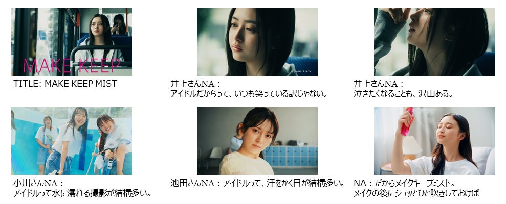 本WEB CMでは、「汗と涙とメイク キープ ミスト!」をキーメッセージに、乃木坂46 5期生11人が「メイク キープ」シリーズのアイテムと一緒に、汗にも涙にも負けない爽やかな笑顔を魅せ、キレイがずっと続く様子を表現します。