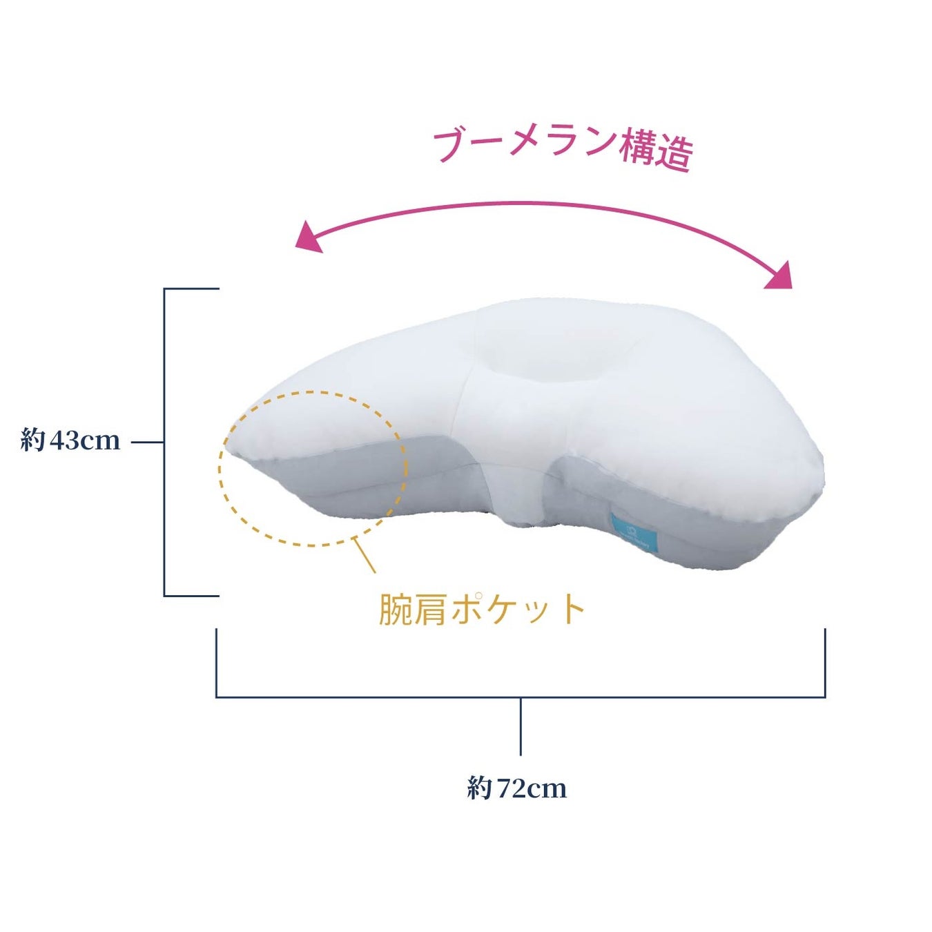 中央、両サイドどこでも横向き寝がしやすい”ブーメラン形状”で体にフィットしやすい形状です。