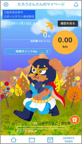 泉佐野市では、従来紙で行っていた健康マイレージ事業について、「だれでも」「身近な場所で」「手軽に」「楽しく」健康づくりを続けられることを目指し、「スポーツタウンWALKER」を活用した健康マイレージ事業(デジタル化)「愛称:さのぽっ歩(さのぽっぽ)」として再スタートしました。アプリでは日々の〝健康づくり活動〟を数値化するため、毎日の歩数や距離が自動的に計測されるほか、体重を入力することでBMI管理ができます。また、市内/府内/全国での歩数ランキングの表示や、泉佐野市のご当地キャラクター「イヌナキン」が歩数に応じて成長していく機能を搭載。市民に「楽しく」ウォーキングを続けていただくための工夫を凝らしています。