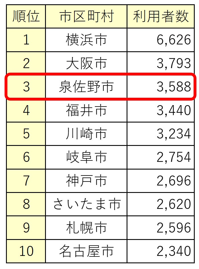 また、導入から半年後には市民の3%が登録し、現時点(8/7時点)では3,588人が登録。利用者数は主要な政令指定都市と遜色がありません。