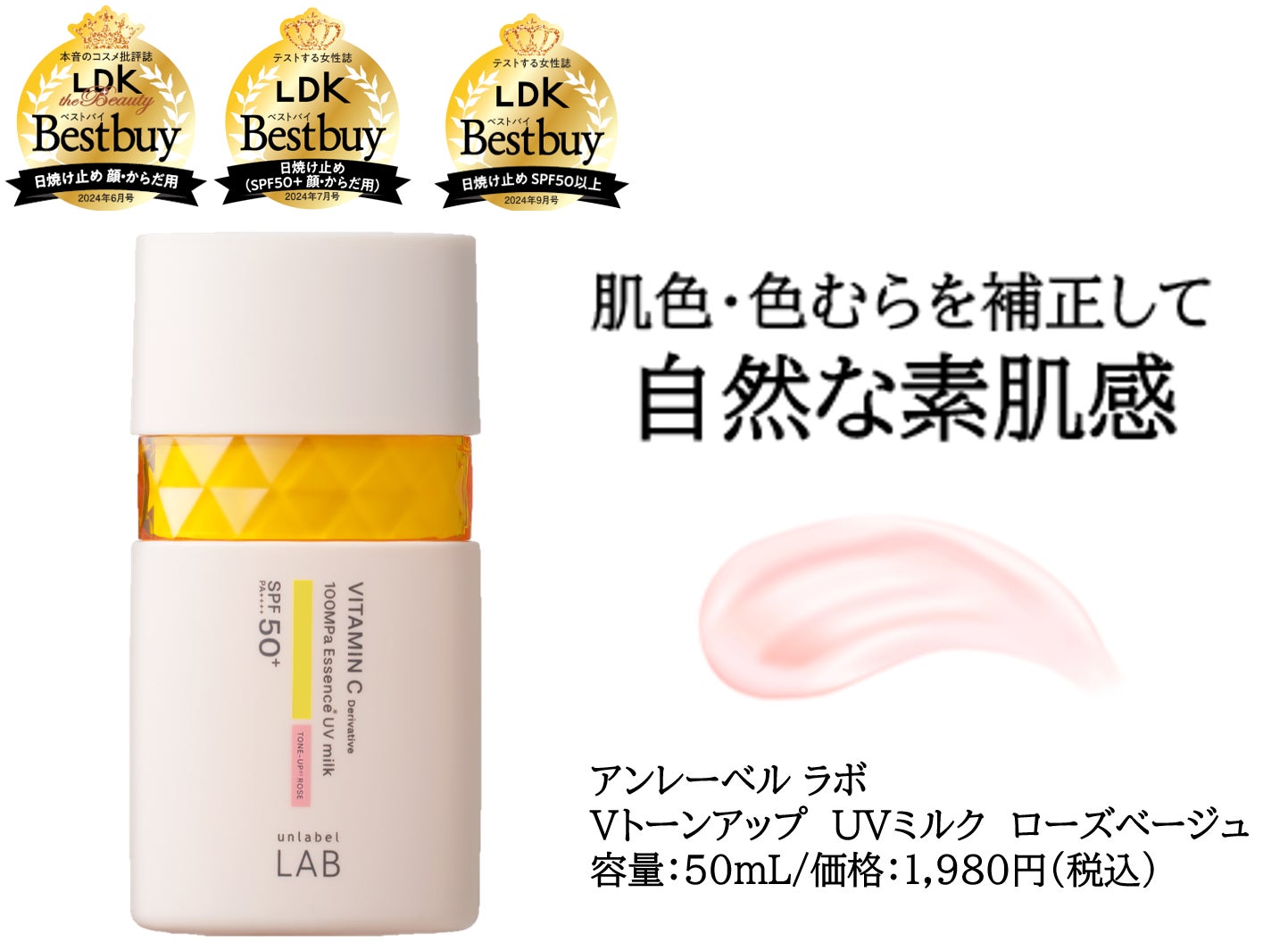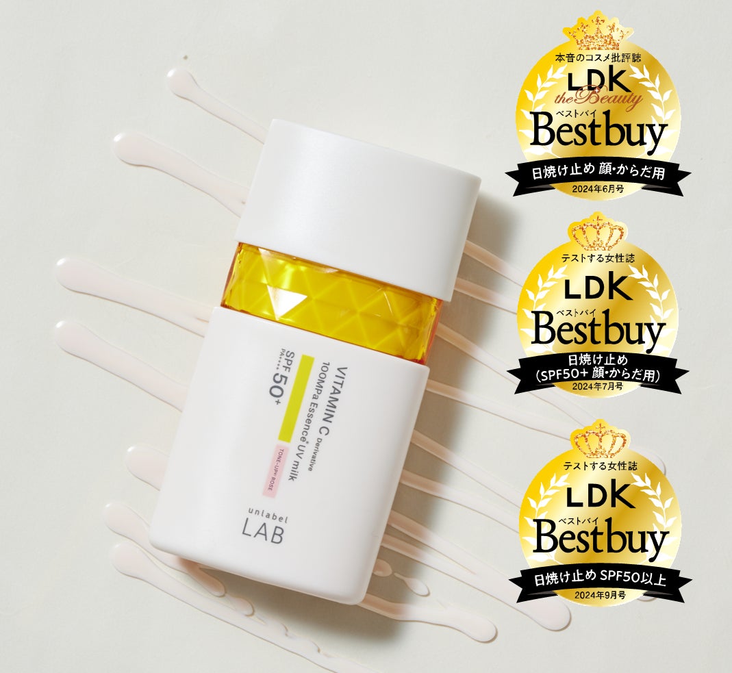 JPSLAB株式会社は、人気の高機能スキンケアブランド「アンレーベルラボ」から、超高圧*¹浸透型*²ビタミンC誘導体*³配合トーンアップ*⁴ UV美容乳液ローズベージュが本音のコスメ批評誌「LDK the Beauty」6月号、「LDK」7月号、9月号にて「ベストバイ」を3冠受賞しましたことをお知らせ致します。
