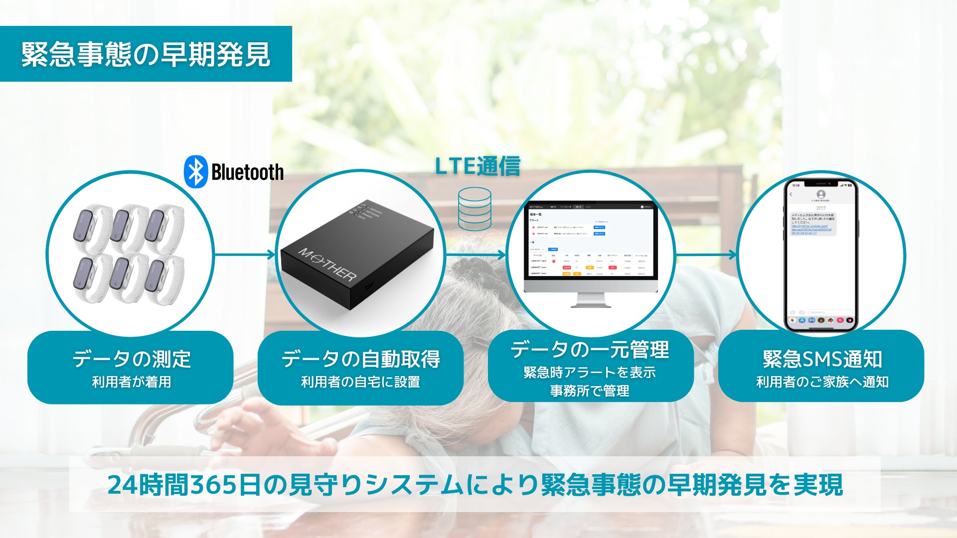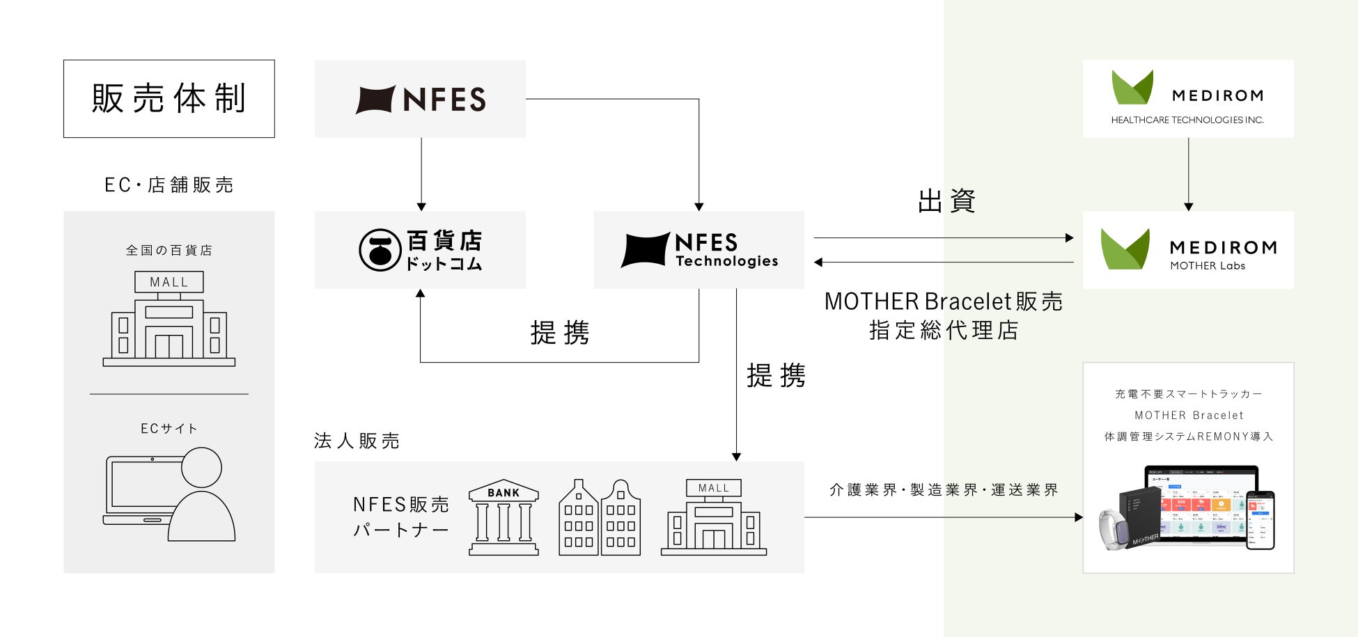 マザーラボが開発をする充電不要のスマートトラッカー「MOTHER Bracelet」及び「MOTHER Gateway」の指定総代理店契約を締結し、NFESグループと業務提携を締結している金融機関様や販売パートナー企業様との連携を活用して、介護業界・運送業界・製造業界等への導入を進めて参ります。