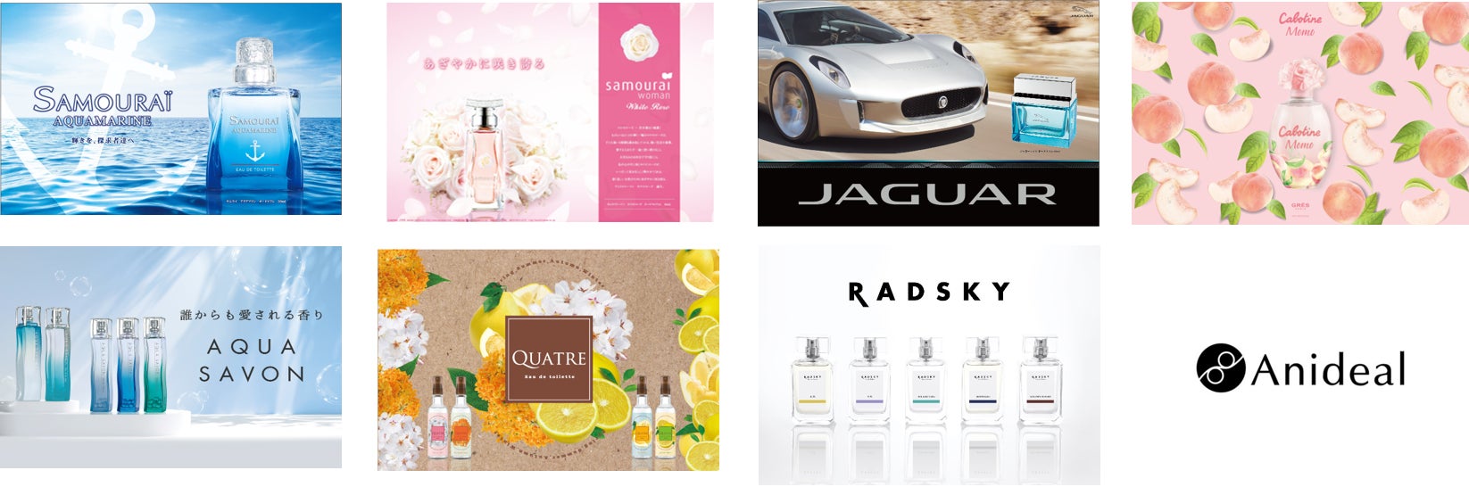 輸入卸として培ってきた実績とノウハウを礎に、日本正規代理店・オリジナルブランドの事業を拡大。フレグランスでは「サムライ」「ジャガー」「グレ」の総代理店を務める一方、メーカーとして「アクア シャボン シリーズ」「ボトコラックス ブラック」を開発する等、幅広いビジネスモデルで多数のブランドを展開しています。