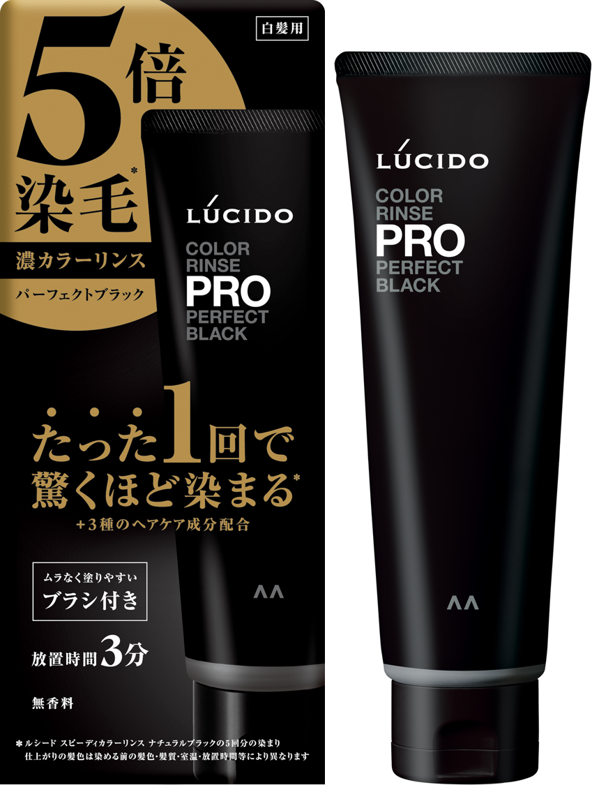 ・ルシード カラーリンス史上最高の染色力。マンダム独自技術の高浸透カラーPRO処方で、従来品の5倍の染色力※1を実現。たった1回、3分の使用でしっかり白髪が染まります。