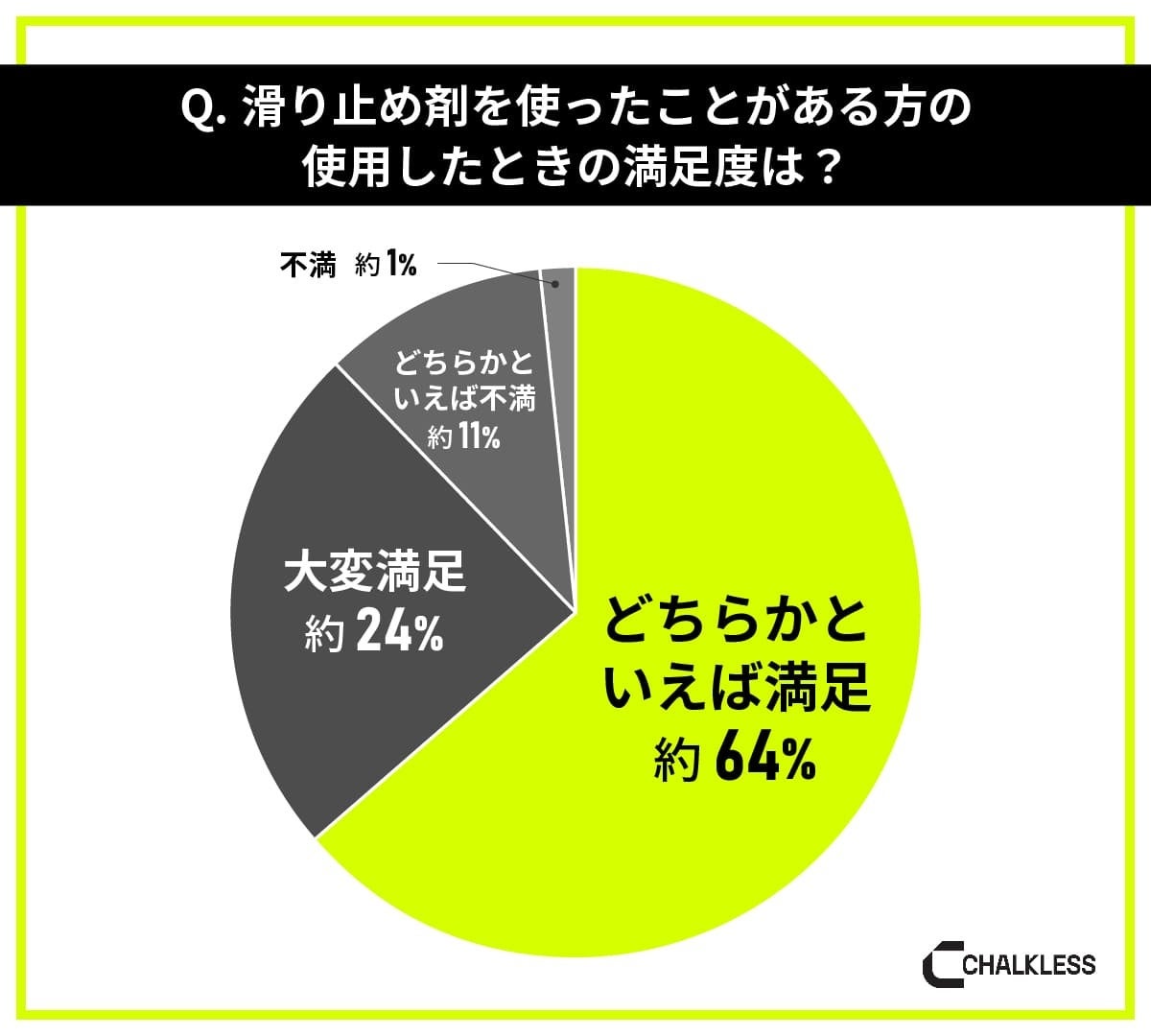 筋トレ・ウェイトトレーニングの最中の手汗や滑りに関して、実際に対策を講じている人は全体の約61%いました。では、自身の取り組みに対しての満足度はどれほどなのでしょうか?「現在使っている滑り止めを使用した時の満足度をお答えください。」と聞きました。