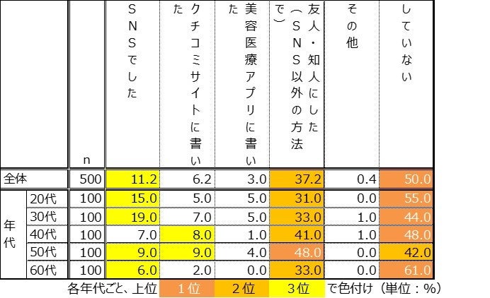 3人にひとり以上が、美容クリニックでスキンケアを受けたことを「友人・知人」へ発信