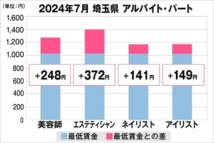 2024年7月時点で『美プロ』に掲載されている「埼玉県」の「美容師・エステティシャン・ネイリスト・アイリスト」求人における「正社員」「アルバイト・パート」の給料を抽出。
