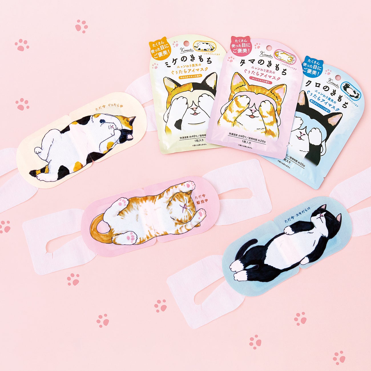 セット内容:ホットアイマスク3個(タマ、クロ、ミケ各1個)