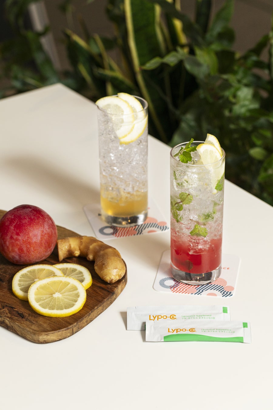 「Lypo-C Vitamin C+D 」を2包プラスした心と体にうれしいノンアルコールカクテルで翌朝のキレイをお楽しみいただきました。