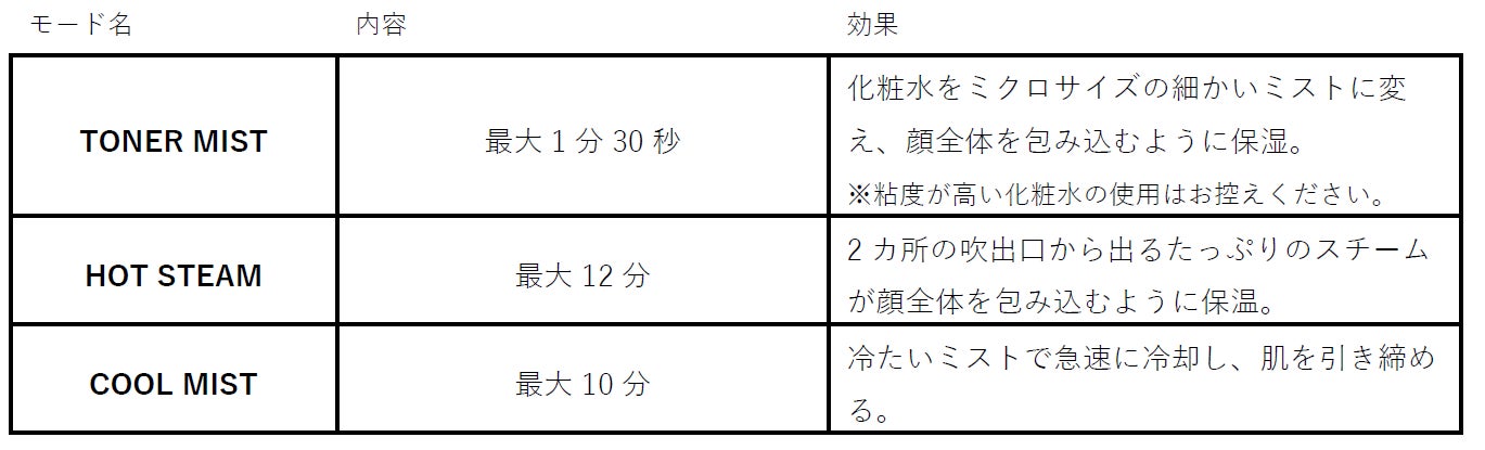 1.<化粧水ミスト機能>により、もっちりとしたハリ感あふれる肌ヘ