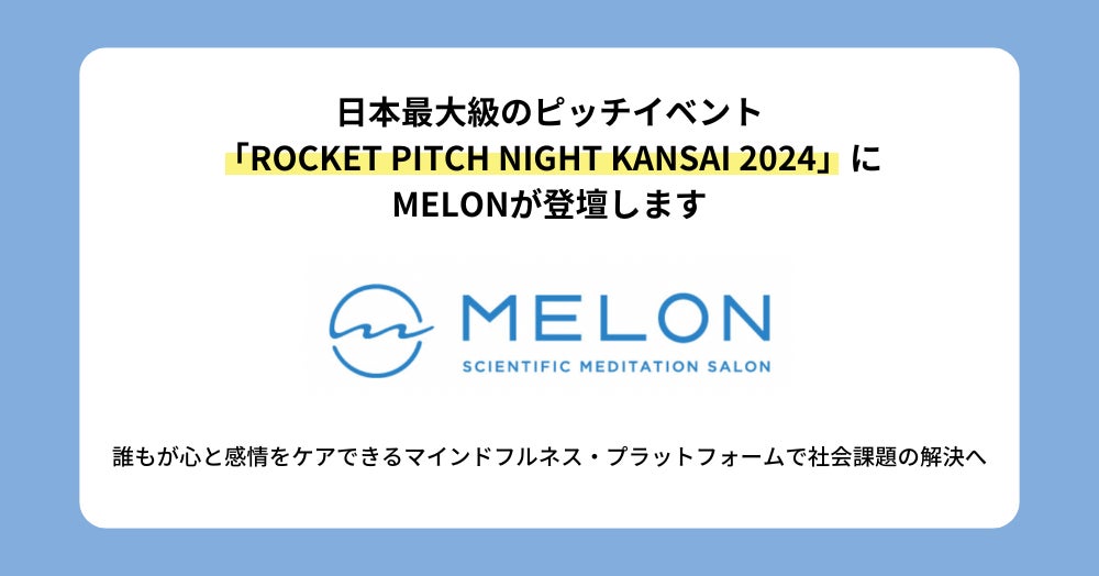 組織の心と感情の課題を解決するエモーショナルマネジメントを提供する株式会社Melon(本社:東京都港区、代表取締役CEO:橋本大佑、以下MELON)は、日本最大級のピッチイベント「ROCKET PITCH NIGHT KANSAI 2024」に登壇します。