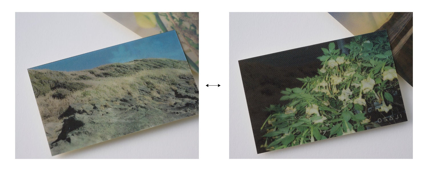 写真家・草野庸子氏による写真を配したレンチキュラーステッカー入り。