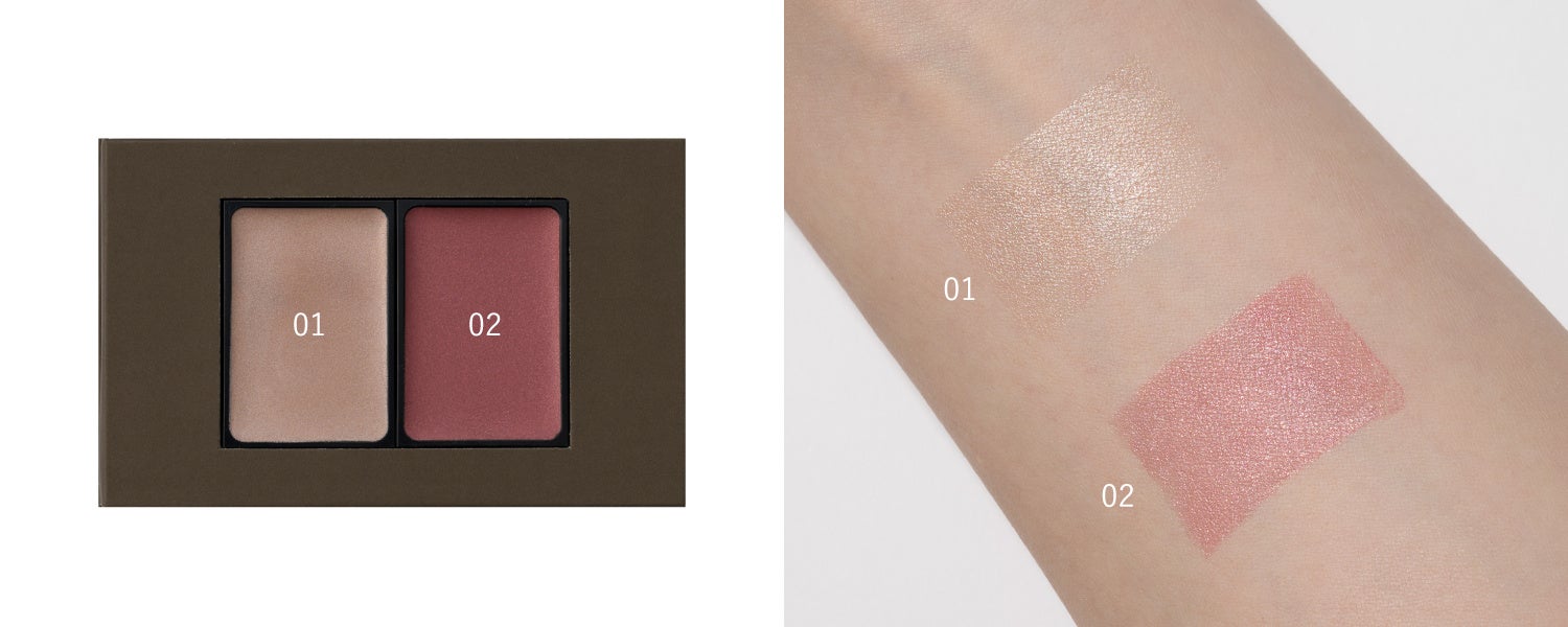 頬に、まぶたに、唇に。色と光をオンして表情を楽しむ、ニュアンスフェイスカラー(マルチユースクリームカラー)のパレットです。肌の上でベタつくことのないさらさら感と、唇や目もとを乾燥させないしっとり感のバランスにこだわり、頬や目もとに使ってもよれにくく、唇に使っても乾きにくいテクスチャを実現しました。透け感のある発色で肌になじみ、感情が滲み出るような、じんわりとした存在感を放ちます。メイクしている間、肌荒れを防ぎながら、肌のうるおいを守ります。写真家・草野庸子氏による写真を配した、アートピースのような佇まいのペーパーボックスパッケージです。