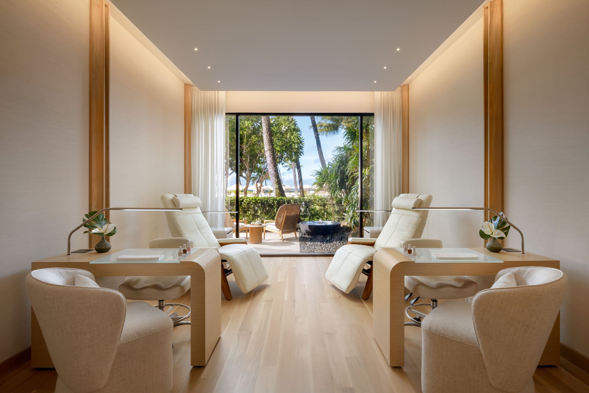 スパハレクラニでは、ネイルケア、ヘアスタイリング、メイクアップも提供されます。