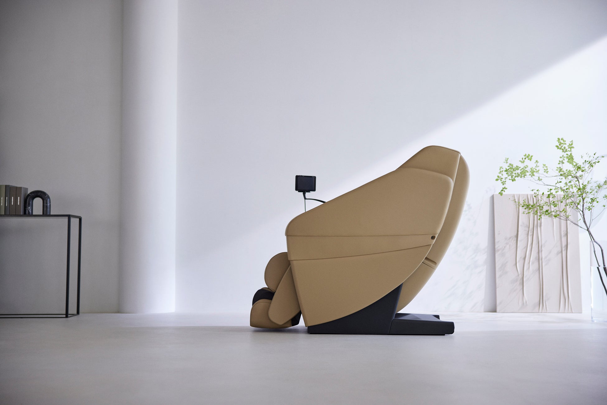 高精度センサーで肩の位置を把握し、モミ玉にかかる圧力を1秒間に100回の精度で感知、調整するAI制御で、一人ひとりの体型に合わせた的確なマッサージを行います。全身を包み込み、からだを預けることができるシェルフォルムはくつろぎの時間を演出しコリや疲れに悩む多忙なビジネスマンを中心に高い評価を得ています。