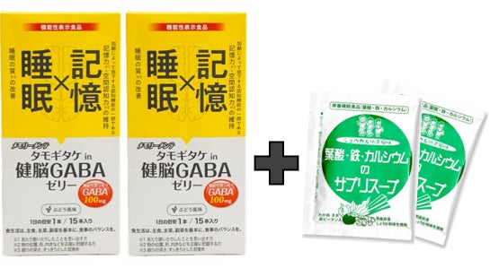 さとやくオンラインショップでは2024年9月2日(月)より敬老の日キャンペーンとして、65歳以上の方に特におすすめなゼリータイプの機能性表示食品「メモリーメンテ タモギタケin健脳GABAゼリー」を2箱セット(30日分)で販売します。本キャンペーンでは、通常2箱7,560円(税込)のところ、受注期間中にご注文いただいた先着65名様限定で65%OFFの2箱2,646円(税込)でお得にご購入いただけます。加えて特典として、葉酸、鉄、カルシウムを食事においしく取り入れられる「葉酸・鉄・カルシウムのサプリスープ」のサンプル2袋(2食分)もプレゼントします。お得なこの機会に、おいしい健脳習慣を始めてみませんか?