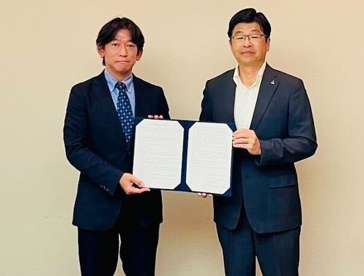 (左:当社代表取締役 土田 泰広、右:墨田区区長 山本 亨)