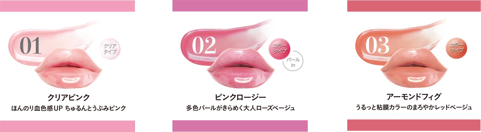 01 クリアピンク 02 ピンクロージー 03 アーモンドフィグ