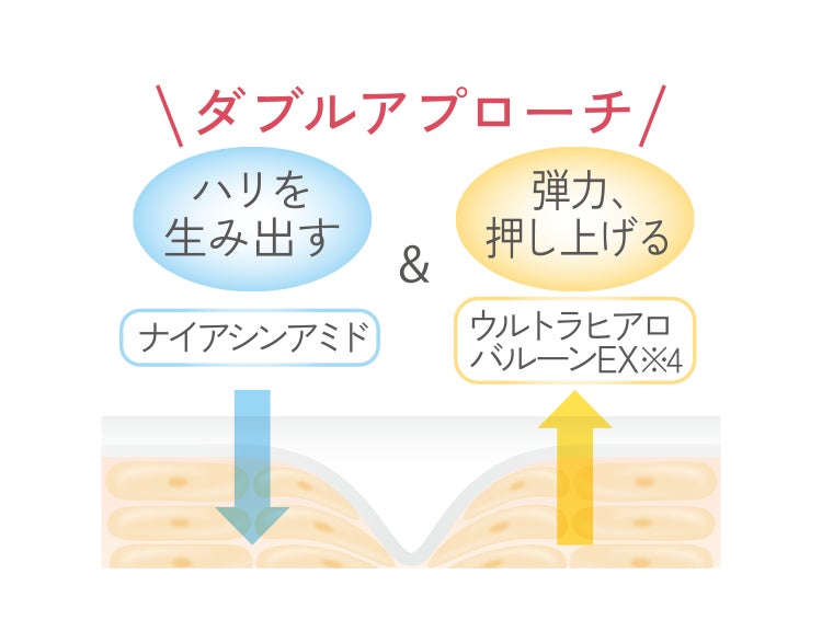 さらに、水分を吸収して膨らむ高濃度ヒアルロン酸※3配合。ダブルアプローチで、ハリのある肌に導きます。