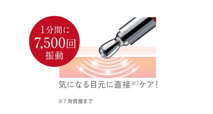 1分間に7,500回の振動を起こし、角層深くまで美容液成分を浸透させます。さらに回転するヘッドのマッサージ効果によって、ハリ・ツヤ・明るさあふれる若々しい目もと印象に導きます。