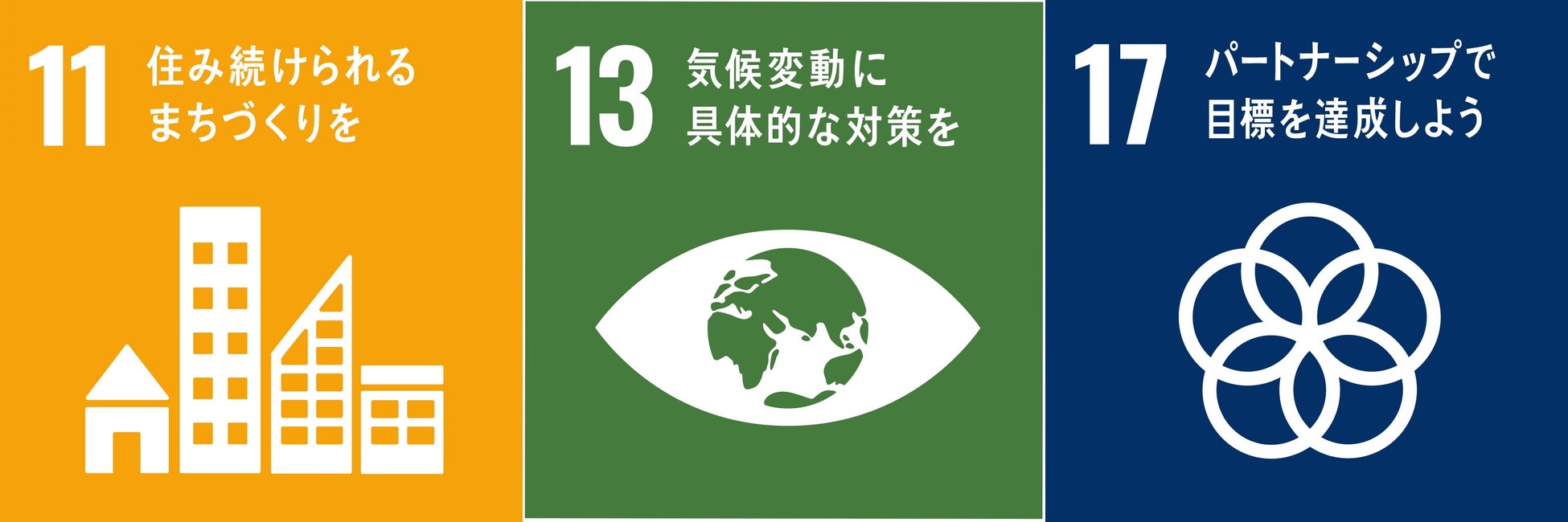 今回、スタイリングライフHDの取組みは、SDGsの持続可能な開発目標11「住み続けられるまちづくりを」、開発目標13「気候変動に具体的な対策を」及び開発目標17「パートナーシップで目標を達成しよう」を支援しています。