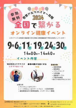 ルネサンス、9月のアルツハイマー月間に高齢者向けオンライン健康教室を開催