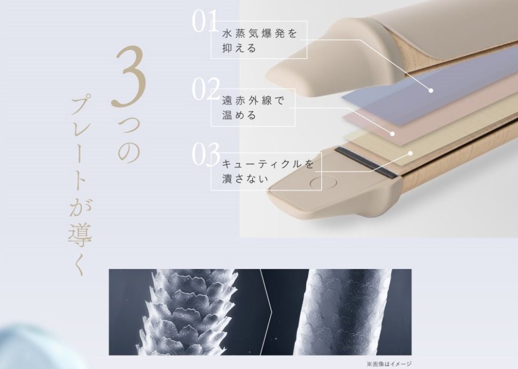 3つの機能からなるプレートが、使うほどしなやかなうるツヤ髪へ導きます。