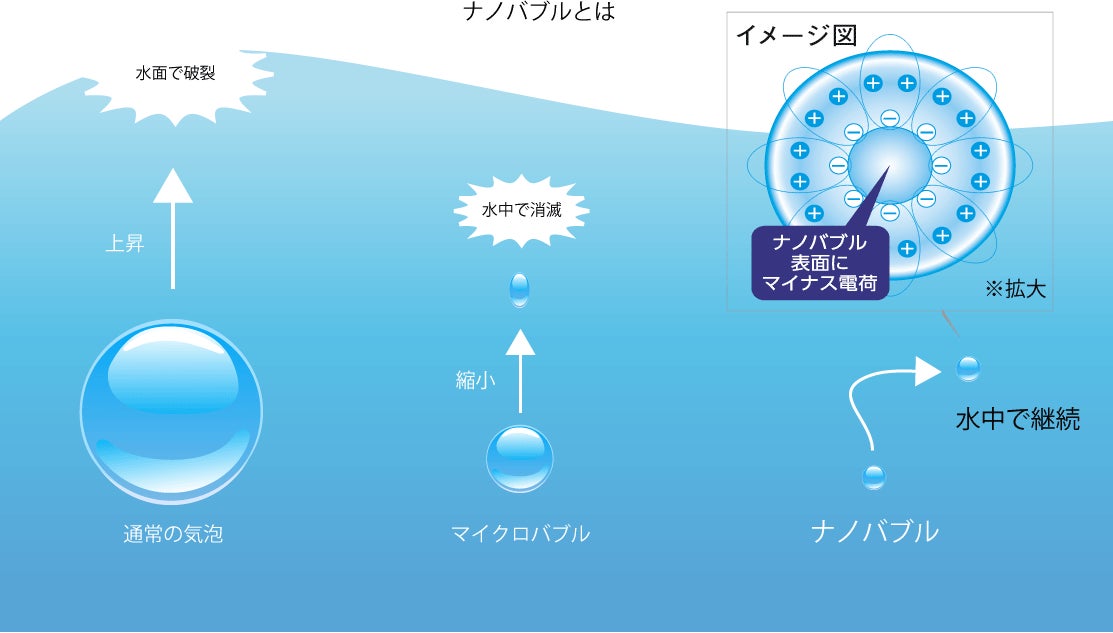 2004年に独立行政法人産業技術総合研究所らにより開発された世界初のナノバブル技術。
