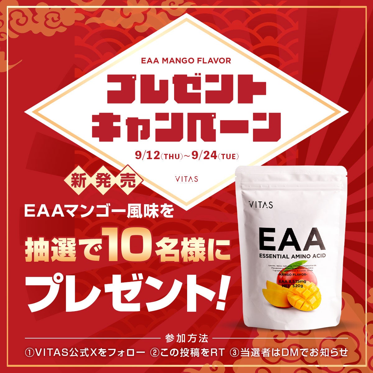 期間は9月12日~24日です!VITAS 公式 X アカウントをフォローし、ぜひご応募くださいね♪