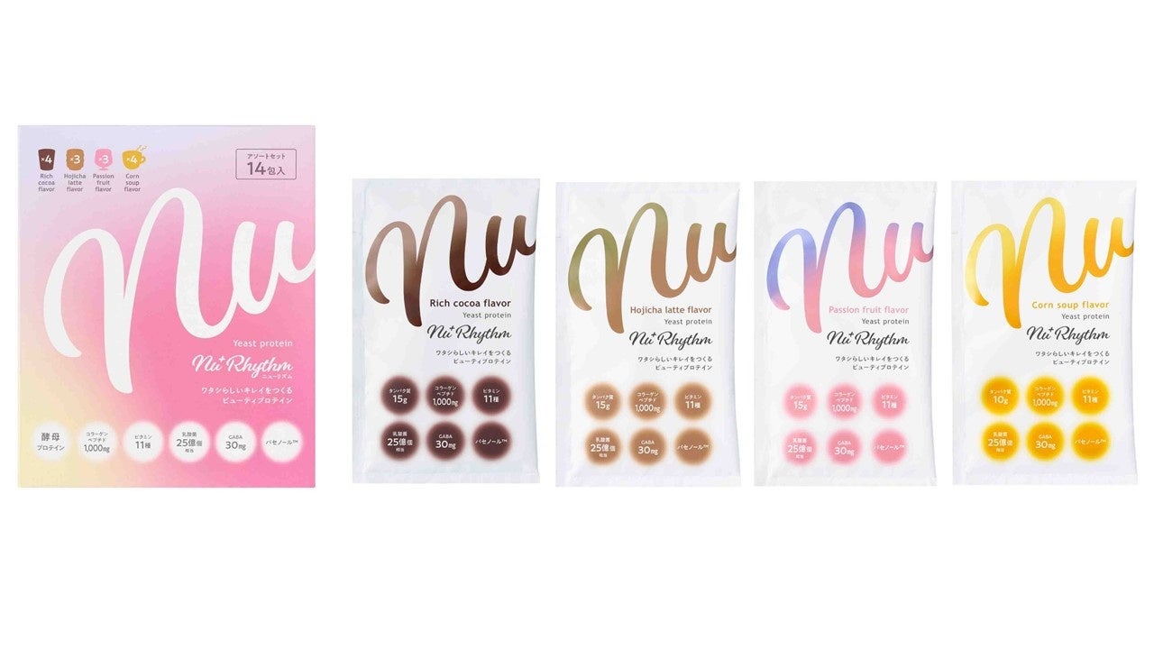 株式会社コーセー(本社:東京都中央区、代表取締役社長:小林 一俊)は、当社のウェルビーイング領域の取り組みとして新インナービューティブランド『Nu⁺Rhythm(ニューリズム)』を立ち上げ、「酵母プロテイン」を主原料に、森永製菓(本社:東京都港区、代表取締役社長:太田 栄二郎)が独自開発した健康素材「TM」などを配合した、一人ひとりの美しく健やかな毎日をサポートする美容プロテイン「イースト(※1)プロテイン アソートセット」 (1品目1品種、ノープリントプライス)を、当社の直営店及びオンラインサイト「Maison KOSÉ」にて2024年9月20日より発売します。
