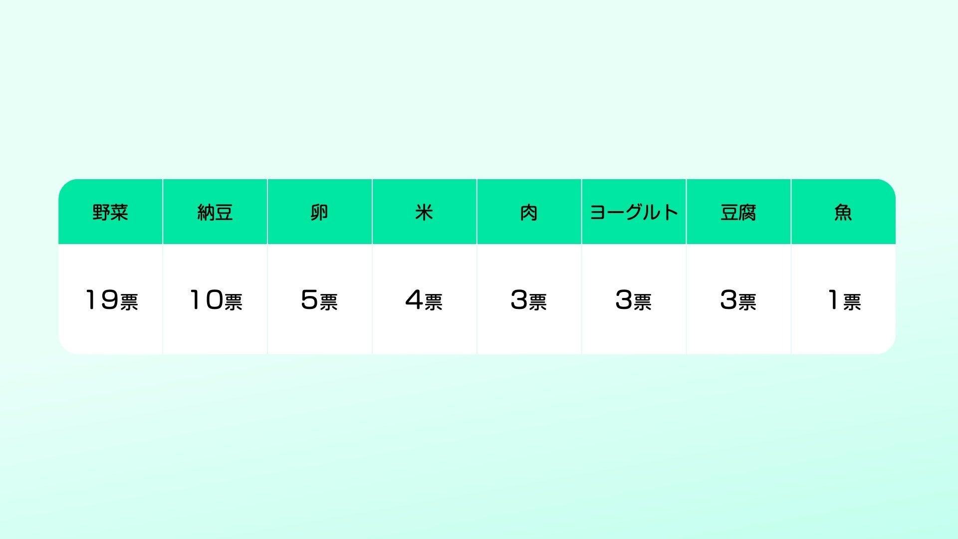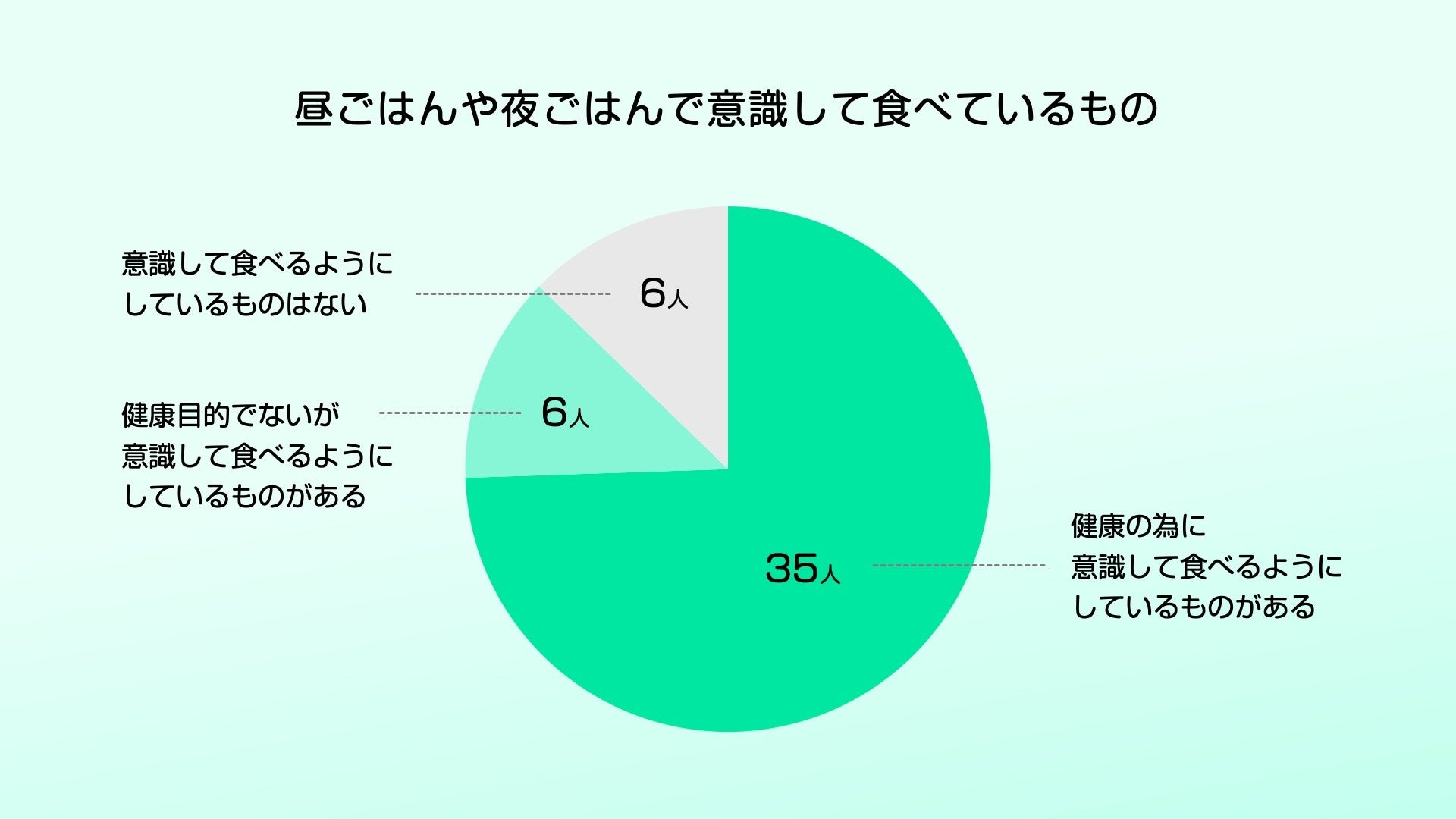 「昼ごはんや夜ごはんで意識して食べているもの」を自由記述式で回答頂き、各回答を下記の3つに分類分けした結果がこちらです。
