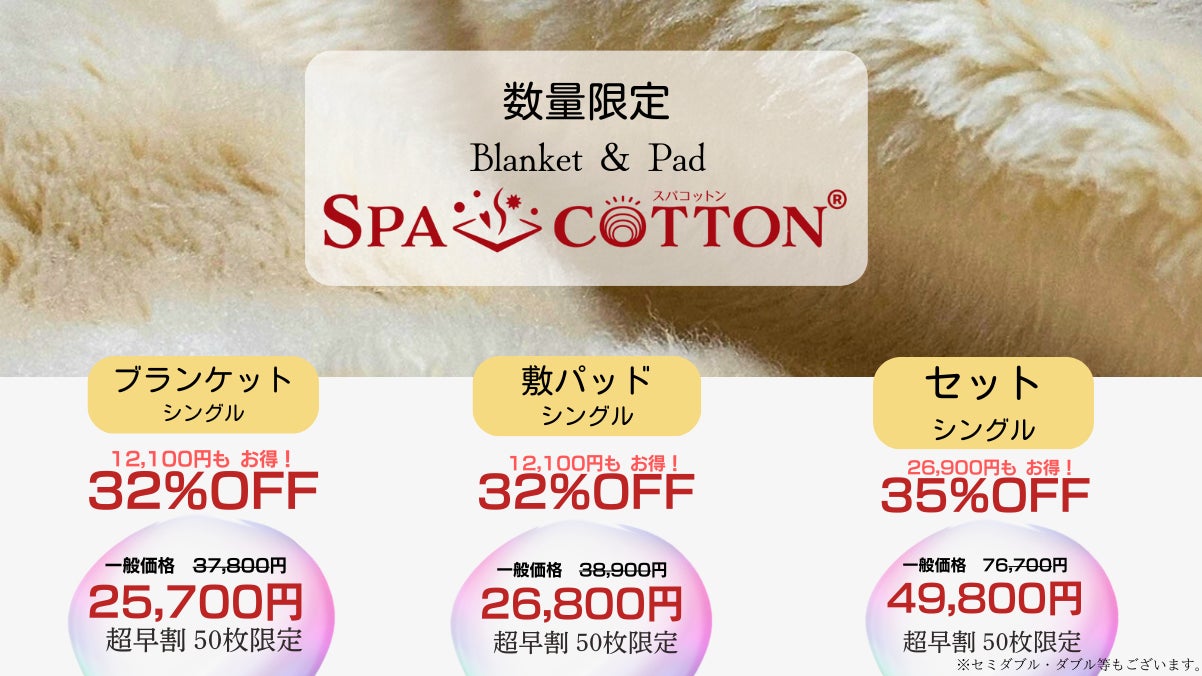 明治17年創業から始まった「株式会社ナガヤコーポレーション」が新たな睡眠をみなさまへ新たなブランドを立ち上げました。それが【SPACOTTON®】サウナと温泉浴の特徴を繊維にし、睡眠環境を整えていきます。9月21日(土)正午12:00~11月24日(日)23:59まで「Makuake公式サイトにて」を実施いたします。【-眠ウナ-SPACOTTON®Wool】は独自配合で特殊素材に特化した全く新しい睡眠浴を実感してみませんか?