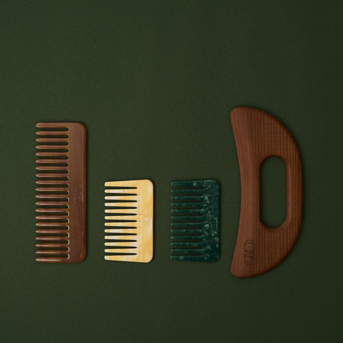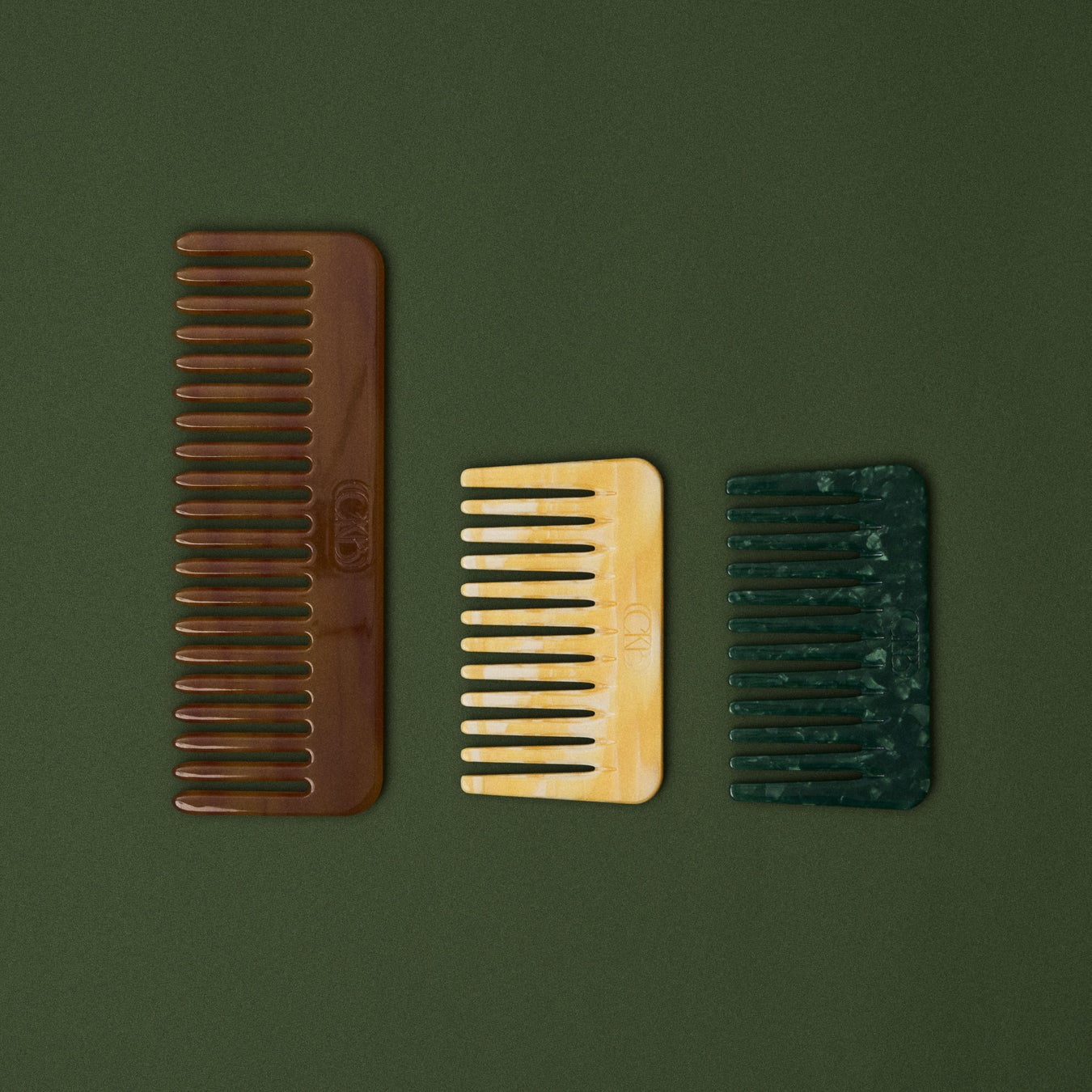 環境に優しいバイオマスプラスチックのヘアコーム。バイオマス素材を使用することで、プラスチックよりブラッシングの静電気が発生しにくく、髪の毛へのダメージを減らすことができます。