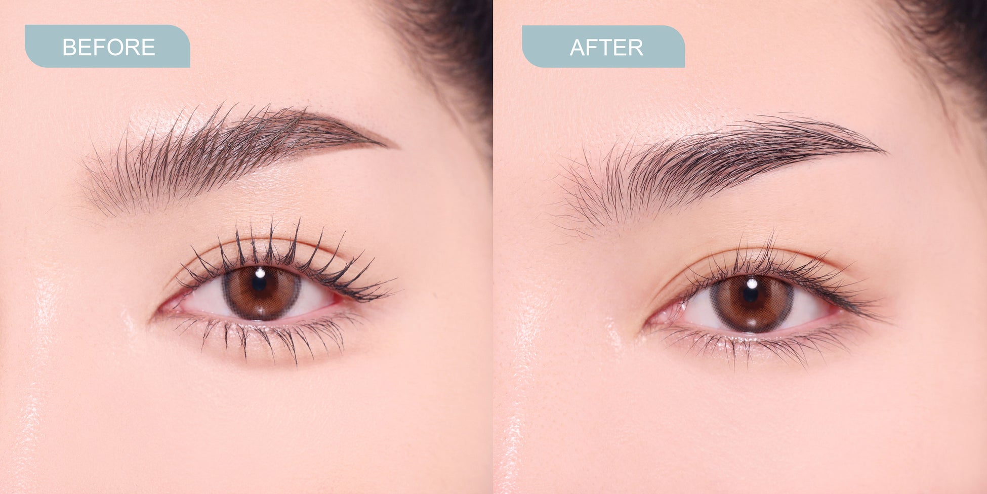 まつ毛の根元から先端にかけてブラシでとかすように塗布します。眉に使用する場合は、眉全体にブラシで塗布します。3~5秒待ってから、まつ毛や眉の周りの余分なジェルをコットンなどでやさしく拭き取ってください。強くこすりすぎないように注意してください。ブラシに残った残量をコットンで綺麗に拭き取ってから容器に戻して保管ください。