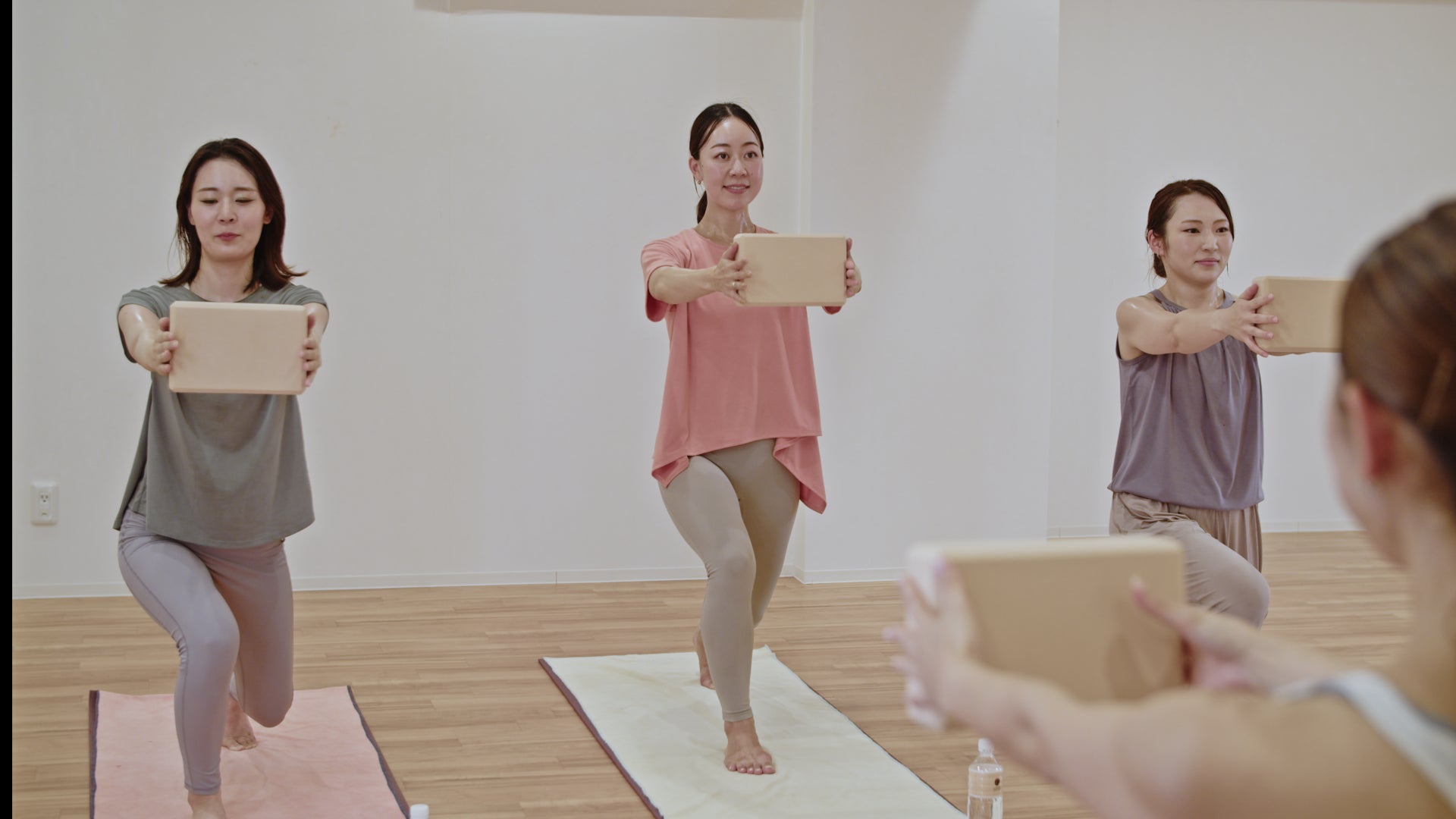 レッスンはよもぎの香りを焚きながらホットスタジオで行っていきます。まるでよもぎ蒸しのような温かい環境で、深い呼吸を行いリラックス効果を引き出します。