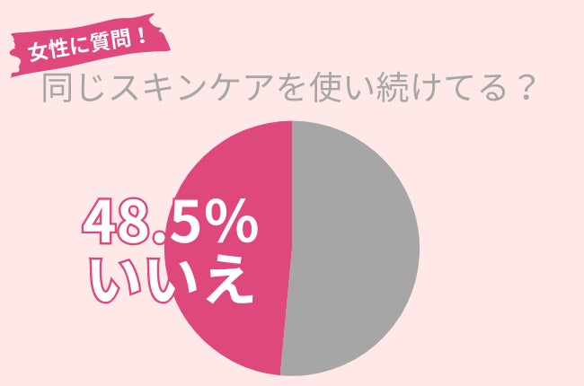 調査の結果、48.5%の女性が同じスキンケアを使い続けていないことがわかりました。ドラックストアに行くと、たくさんのスキンケアアイテムが並んでいますよね。また、韓国コスメやデパコスも人気です。スキンケアを色々試すことが好き、という方だけでなく、「スキンケア迷子」でストレスを抱えている方もいらっしゃると思います。