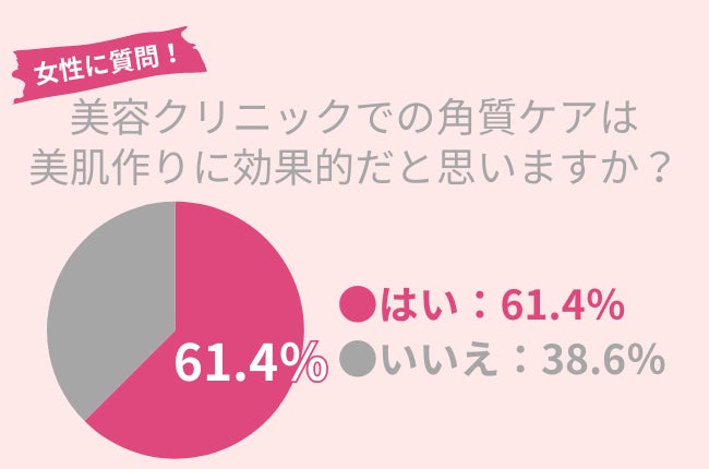 調査の結果、61.7%と多くの女性が「美容クリニックでの角質ケアが美肌作りに効果的だ」と思っていることがわかりました。美容クリニックでの角質ケアには、薬剤を顔に塗布する「ケミカルピーリング」や、美容器具を用いて、古い角質や汚れを振動で浮かす「毛穴洗浄」などがあげられます。