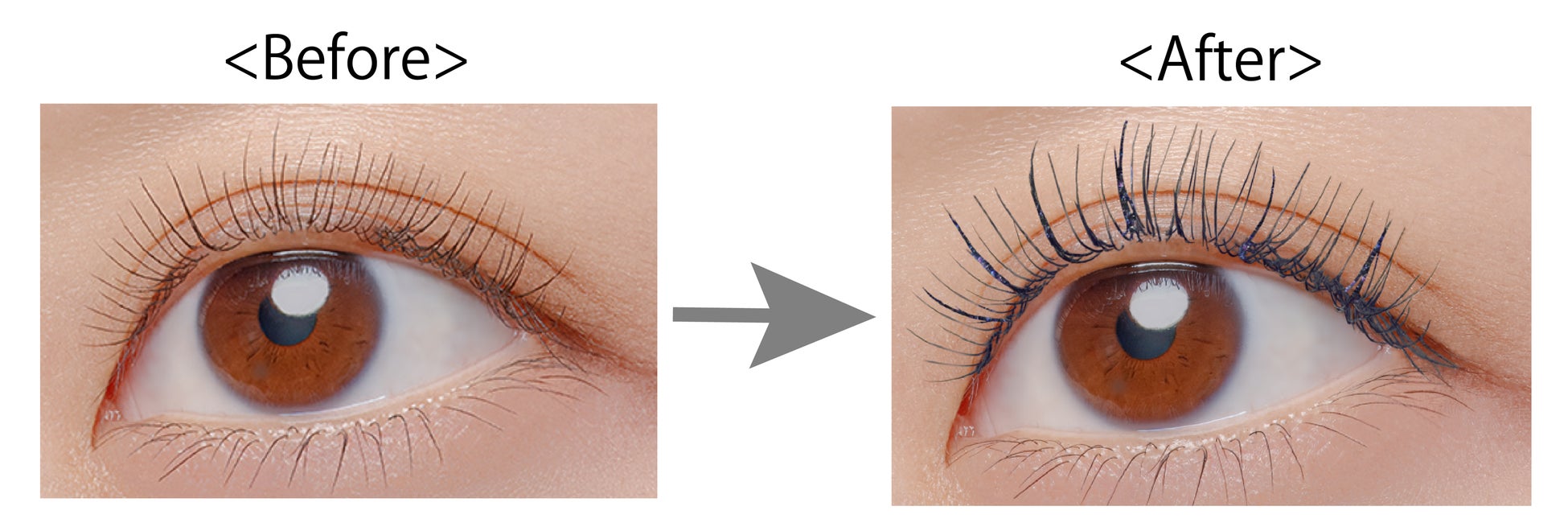 ブラック・ブラウン・クリアのファイバー3種を配合で印象的なロングまつげに。