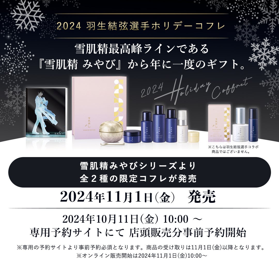 株式会社コーセー(本社:東京都中央区、代表取締役社長:小林 一俊)は、当社を代表するグローバルブランド『雪肌精』のグローバルミューズである羽生結弦選手による、『雪肌精』の最高峰シリーズ「雪肌精 みやび」との「スペシャルコラボレーションコフレ~The Radiant Gift~」を、2024年11月1日(金)に発売します。発売に先立ち、2024年10月11日(金)10時より雪肌精公式オンラインショップにて予約受付を開始します。