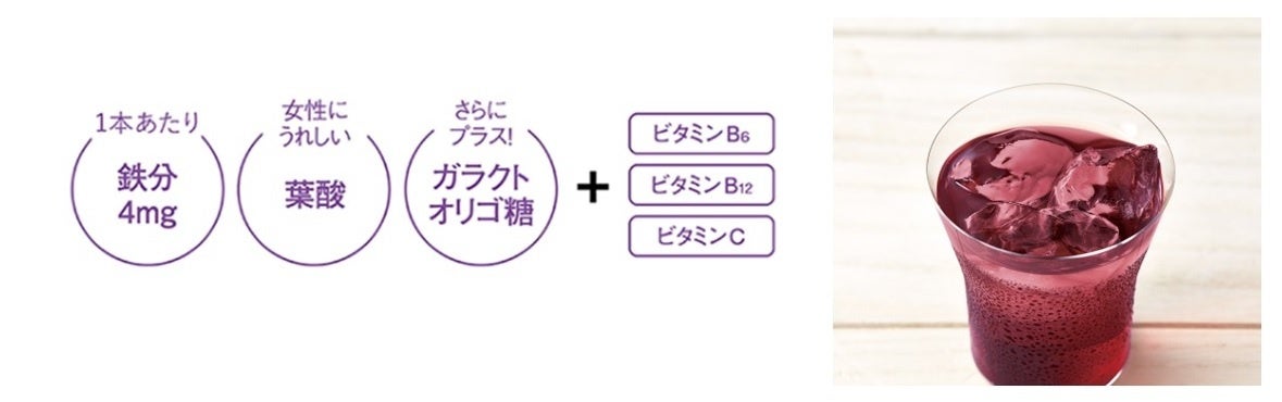 『グレープFe(エフ・イー)』は、鉄分4mgに加え、葉酸とガラクトオリゴ糖などを1本で効率よく摂取できる鉄分飲料です。