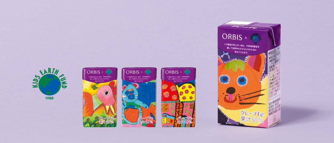 未来を担う子どもたちへの寄付支援を主軸とする新たな取り組みの一つとして、子どもから大人まで幅広く飲める、長年愛されてきた鉄分補給ドリンク『グレープFe(エフ・イー)』のパッケージを、子供地球基金に寄せられた子どもの絵を用いた特別デザインに。本商品の売上の一部は、子供地球基金を通して、世界中の子どもたちの支援に使われます。