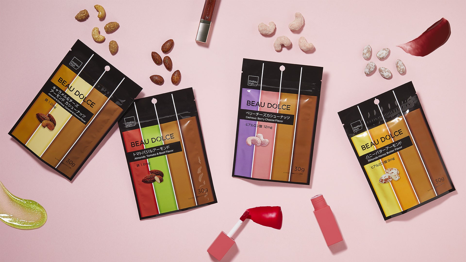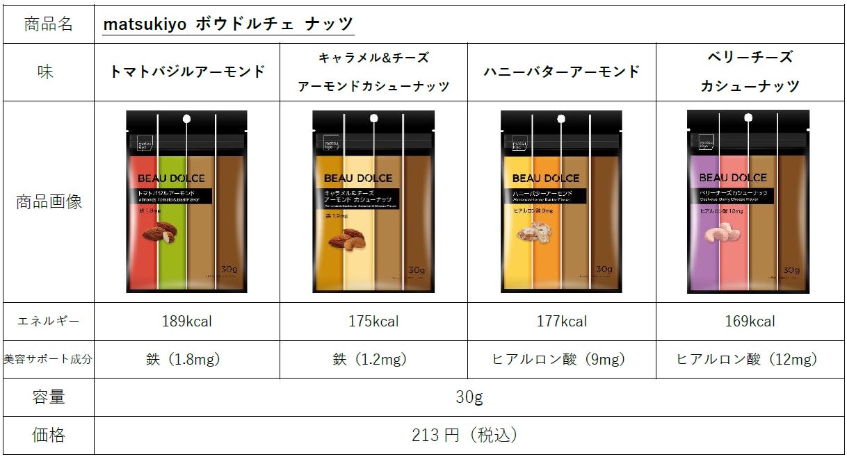 「未来の常識を創り出し、人々の生活を変えていく」をグループ理念に掲げ、全国に3,400店舗超のドラッグストア・調剤薬局を展開する株式会社マツキヨココカラ&カンパニー(本社 : 東京都文京区、代表取締役社長 : 松本清雄)は、コスメライクなパッケージとともに美容サポート成分を配合した、新発想の美容おやつブランド「matsukiyo BEAU DOLCE(マツキヨ ボウドルチェ)」の展開をスタートします。シリーズ全12種を、10月11日(金)より全国のマツモトキヨシグループ、ココカラファイングループの店舗(一部店舗を除く)と自社オンラインストアで販売開始します。