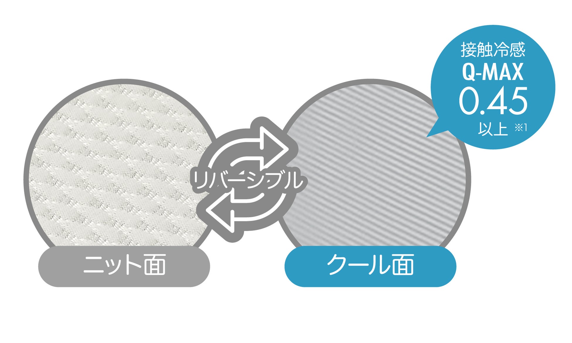 カバーは、年中快適な寝心地を実感できるふんわりニット面とQ-MAX0.45以上の強クール面のリバーシブル仕様!