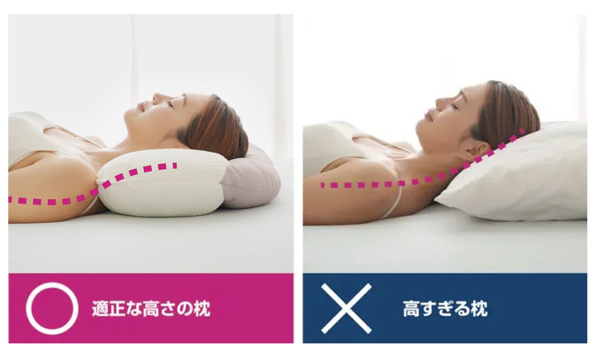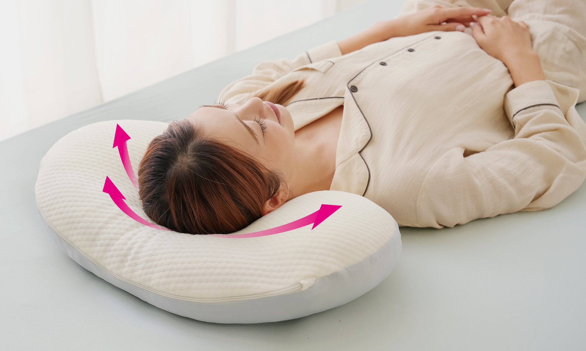 首のすき間をしっかりと埋める適度な高さで首筋の自然なS字カーブをサポートし、頸椎を支え、快適な睡眠を促してくれます。
