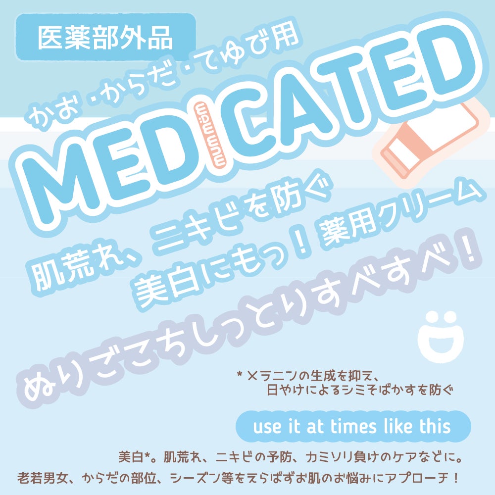 医薬部外品の薬用クリームです。しっかり効能又は効果を確認して、用法用量をまもって適切にケアしましょう◎