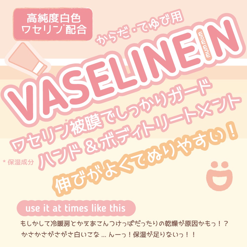 ”ワセリン*被膜 ”で乾燥をしっかりガードし保湿します。